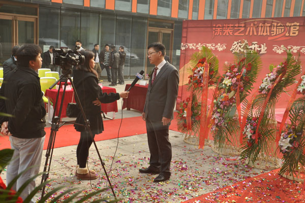 涂裝藝術體驗館于2015年11月15日在北京盛裝開業,作為京城首先集生活、休閑、辦公為一體的多功能展示廳,在這里可以既可以感受家的溫馨,又可以享受咖啡廳的休閑與舒適,獨特的裝修風格,不僅吸引了行業內各級領導的光臨,還吸引了各大知名主流媒體記者紛紛來訪,譬如:CCTV、千龍網......